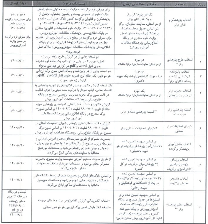 جدول زمانبندی ارسال مستندات پژوهشی